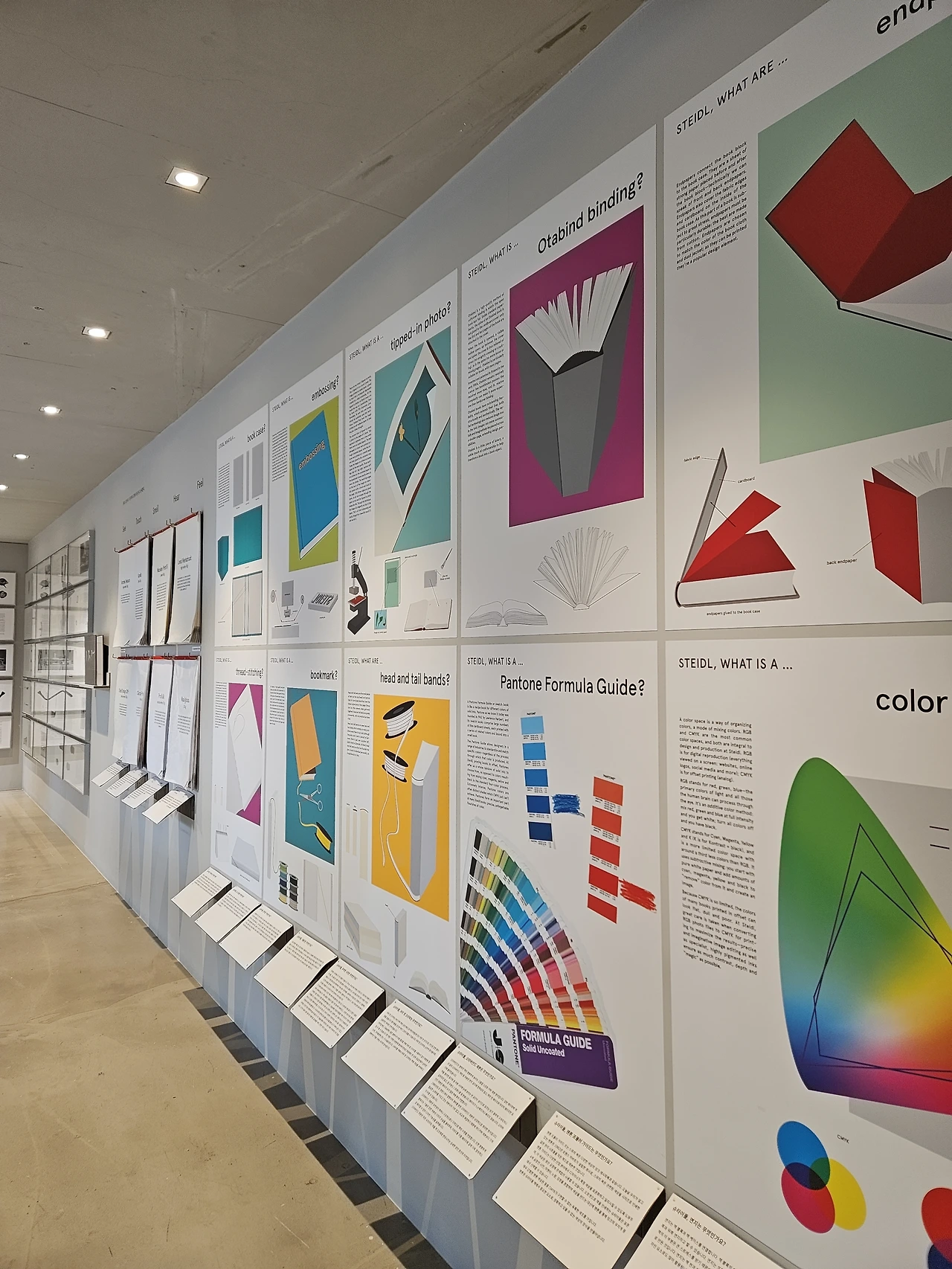 슈타이들의 디테일한 책 제작 과정을 볼 수 있는 코너입니다. 종이의 질감부터 서체, 컬러 등 슈타이들이 인정하는 '완성'이라는 기준은 쉽게 만족될 수 없음을 알았습니다. 이러한 기준은 하루아침에 만들어진 것이 아닐 겁니다. 반세기가 넘는 시간 동안 무수한 시행착오가 만들어낸 결과라고 생각하니 벽에 붙은 포스터 하나하나가 모두 예술 작품으로 느껴졌습니다.