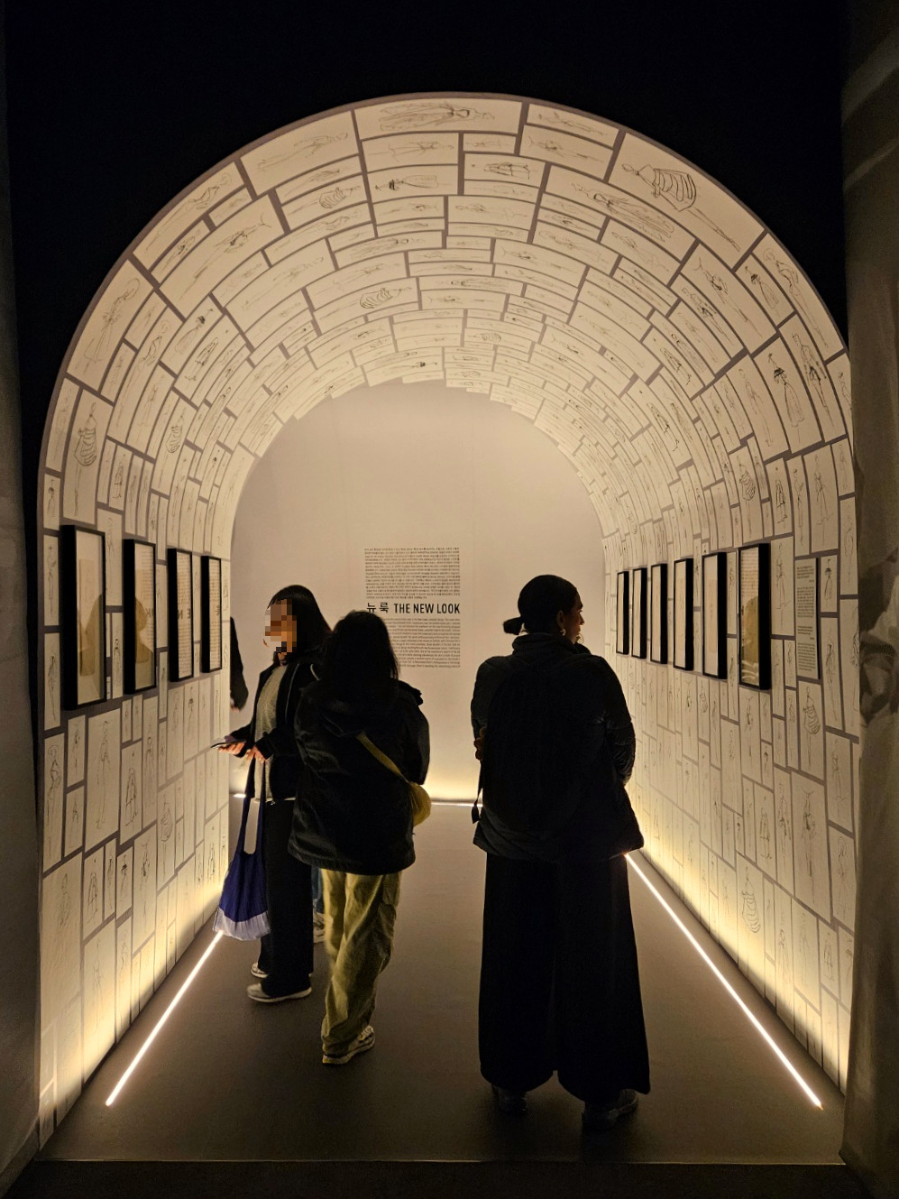 아치형 통로에서는 벽면을 가득 채운 크리스챤 디올의 스케치를 만날 수 있다. 그의 첫 컬렉션인 '뉴 룩'의 주요 실루엣을 보여주는 이 스케치들은 디올의 창의적인 여정을 보여준다. 영화 속 에이다도 크리스챤 디올의 말처럼 이곳에서 이렇게 외쳤을까, 'Oh, j'adore!' (오! 완전 마음에 들어!)