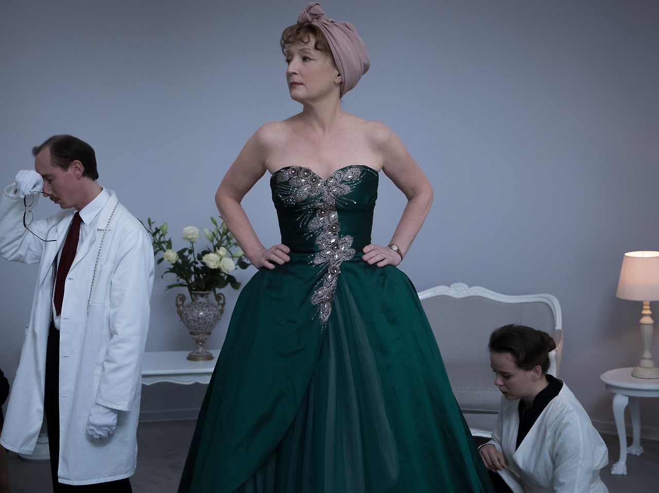 디올 하우스의 상징, 뉴 룩(New Look)의 대표작 《바 수트》다. 영화에서 파리 디올 컬렉션 쇼를 찾은 에이다가 처음으로 보았던 드레스이기도 하다. 우아하게 잘록한 허리와 풍성한 스커트의 대비는 전쟁으로 억눌린 여성성을 해방시키고, 아름다움에 대한 갈망을 대담하게 표현했다. 바 수트 옆으로 다양하게 재해석된 작품들은 무슈 디올의 혁신적 미학이 시대를 넘어 지속되고 있음을 보여준다.