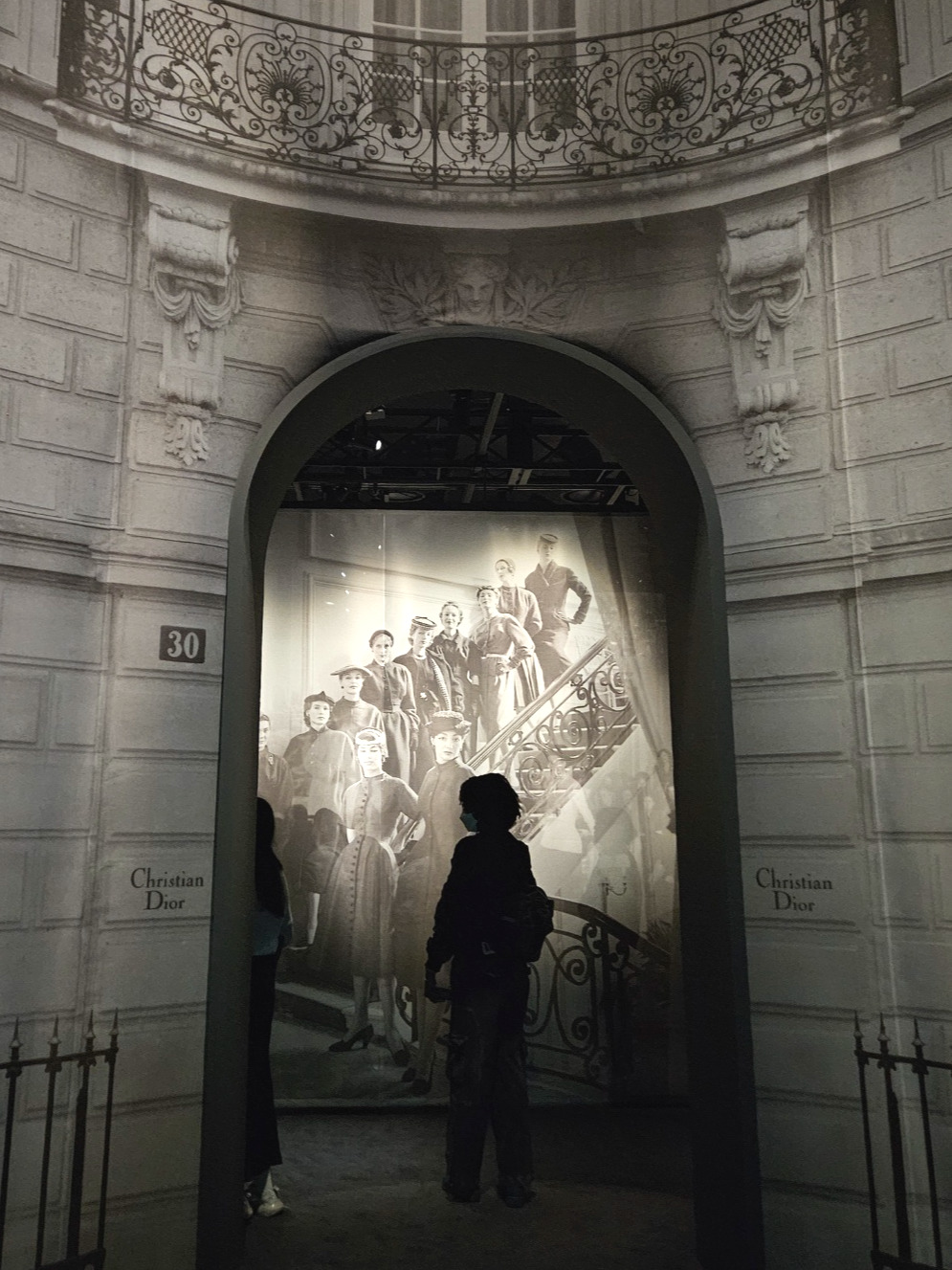 전시장 입구에 들어서자, 크리스챤 디올의 첫 컬렉션이 열린 '몽테뉴가 30번지 디올 하우스'의 입구가 보인다. "모든 것이 완전히 새로운 하우스를 꿈꿨다"던 크리스챤 디올의 말처럼, 이곳은 과거의 정교함과 현대의 감각이 섬세하게 어우러진 새로운 공간이다. 또각거리는 구두 소리가 공간을 채우고, 마치 누군가 아름다운 드레스를 입고 중앙 계단을 우아하게 내려오는 듯한 환상에 빠져든다. 이 입구를 지나면 영화 속 에이다가 꿈에 그리던 오뜨 꾸뛰르의 성지가 펼쳐진다.