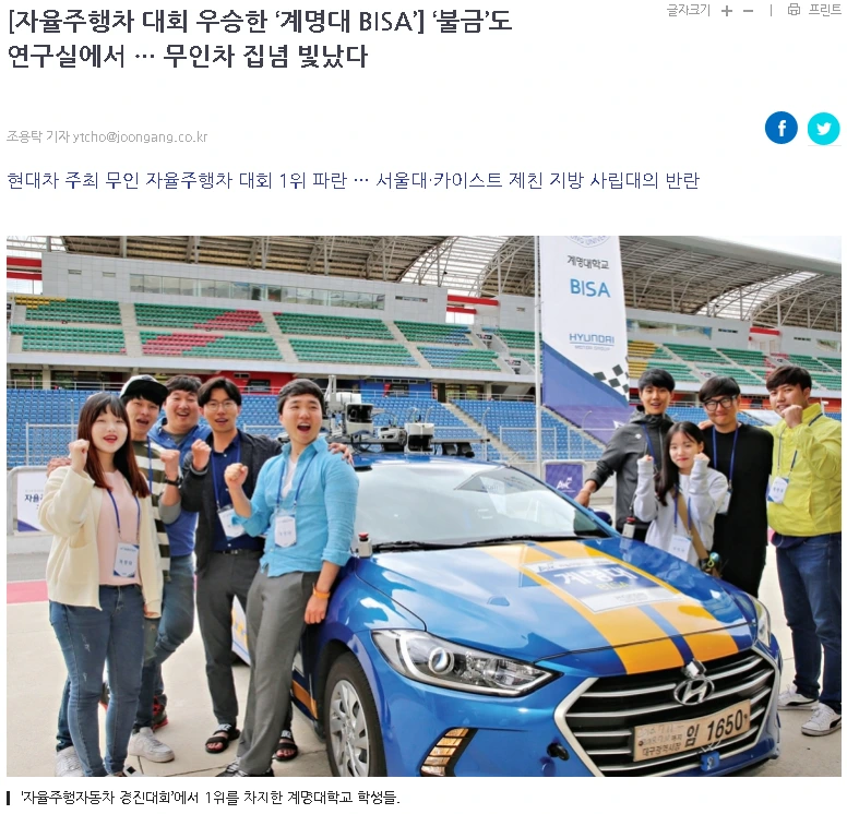 얼마 전 있었던 '자율주행차 경진대회'에서 서울대, 카이스트, 연세대 등을 제치고 지방 사립대인 계명대학교가 우승했다는 소식에 지금 내가 말하고자 하는 하나의 사례를 보는 것 같았다. <자율주행차 경진대회 소식 기사 바로 가기>