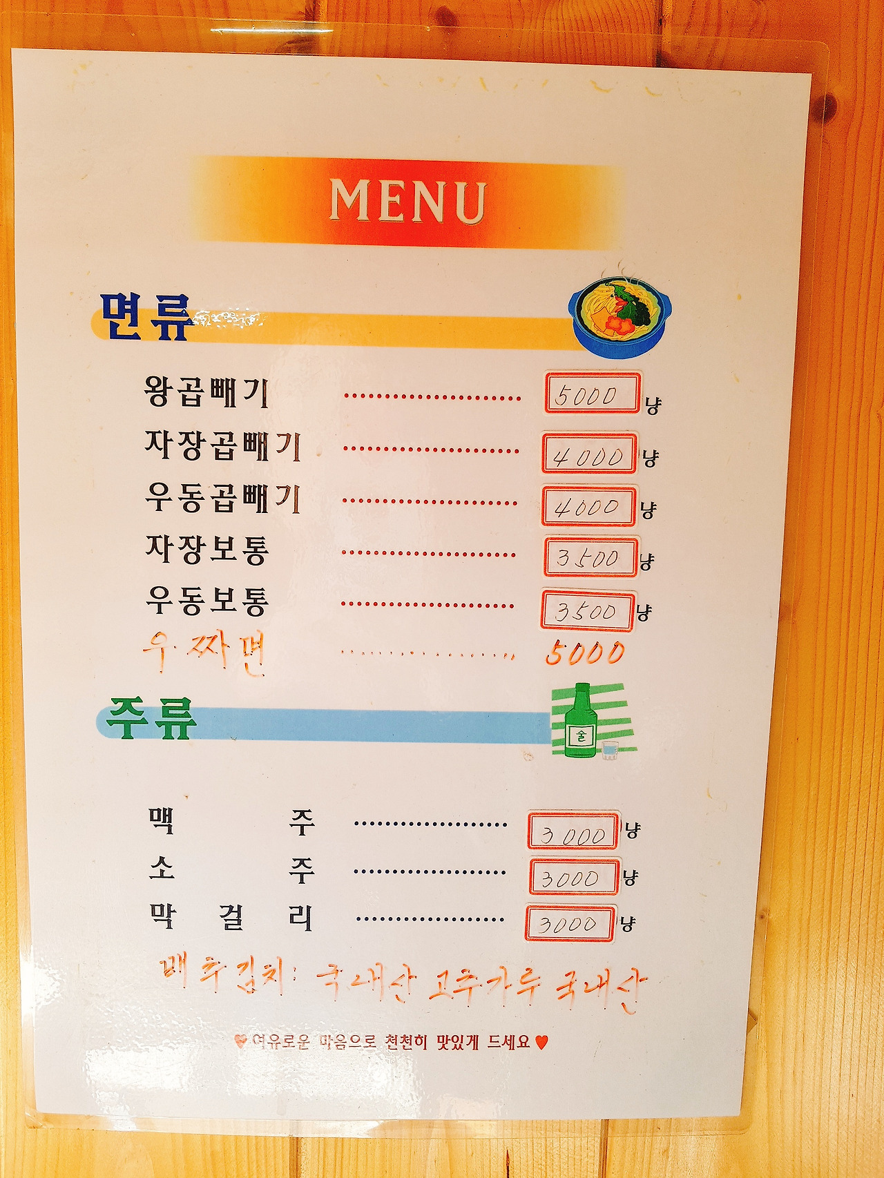 5. 탕수육이없고 짜장과 우동만 있다.