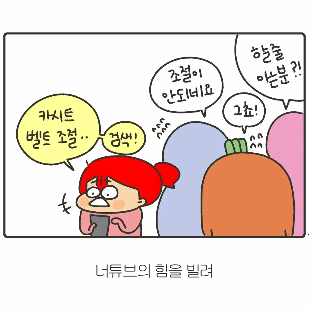 "차에 카시트를 고정하는 법만 알아왔지.."