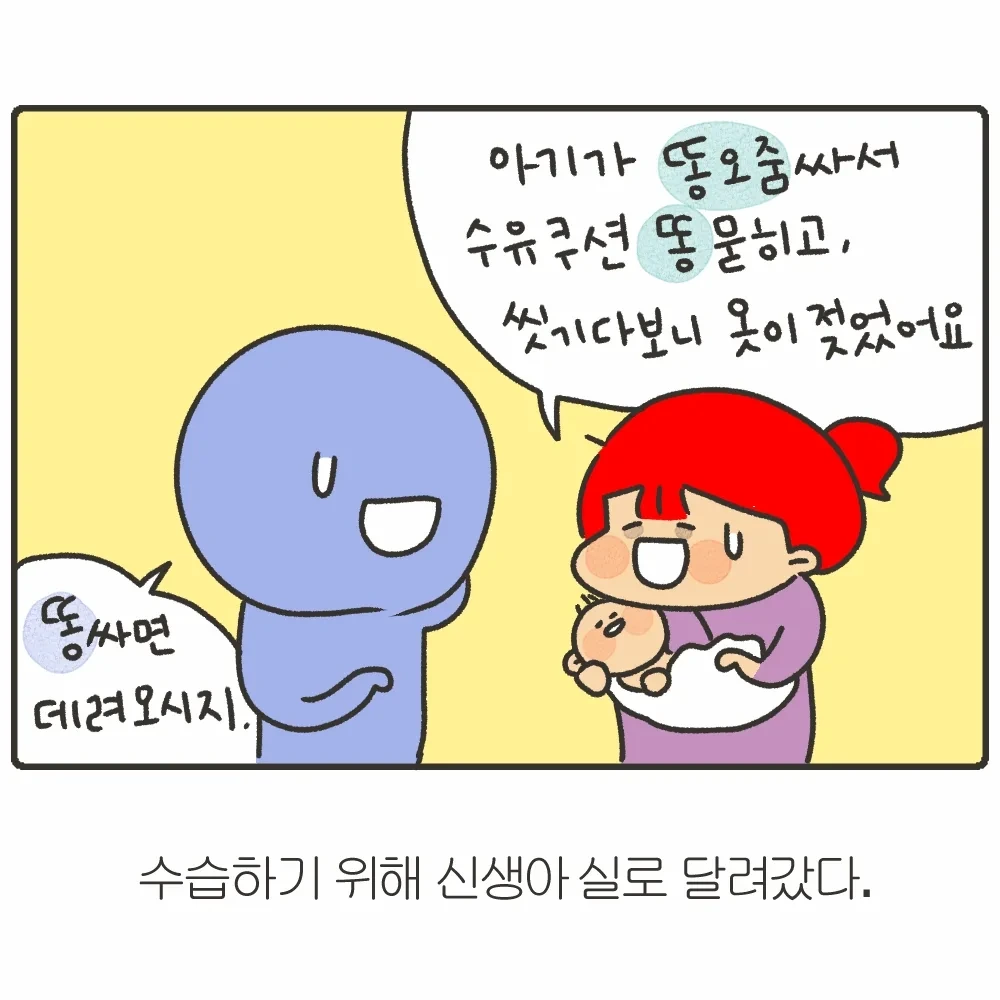 1. 하루에 열번이상 기저귀 갈아줘야한다.