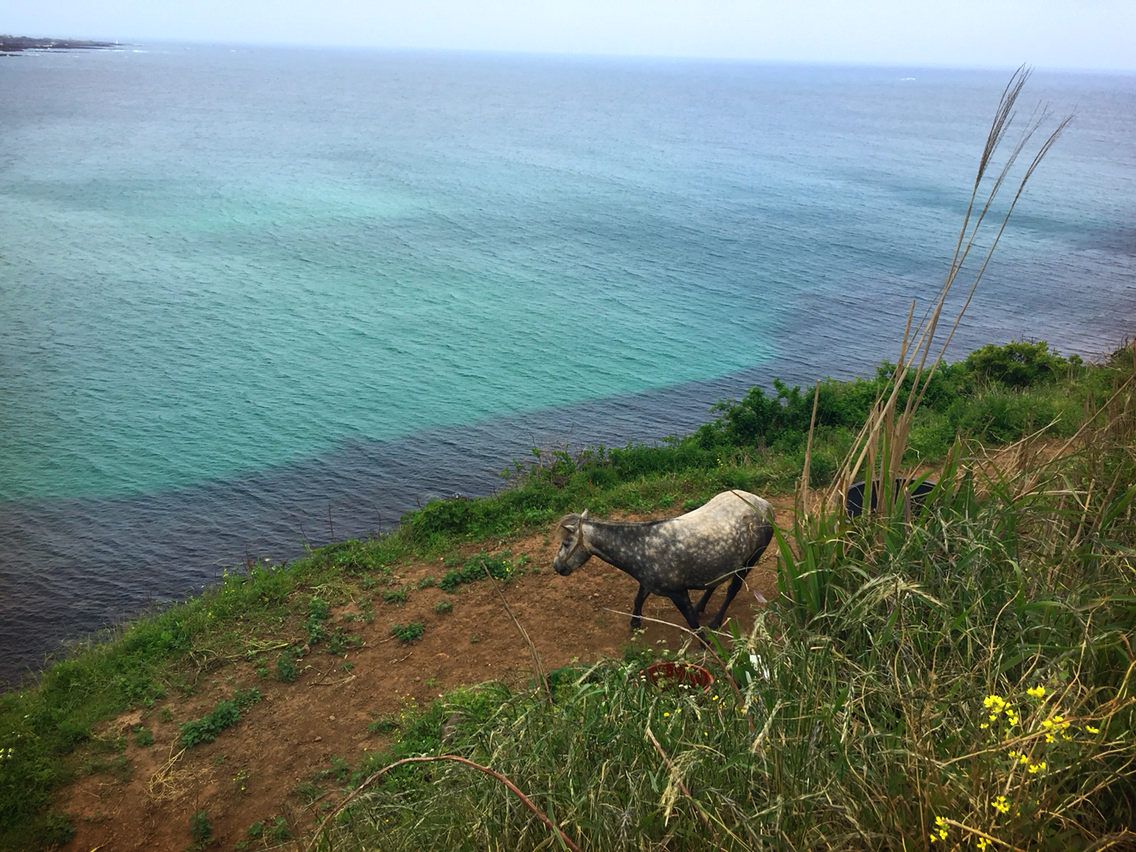 바람은 살랑살랑 불어오고 길은 잘 다져져 시멘트 바닥처럼 차갑지도 딱딱하지도 않고 푹신하고 편안하다. 한무리의 말도 보였다. 묶이지 않고 요리조리 다니며 풀을 뜯는 모습이 평화롭다.