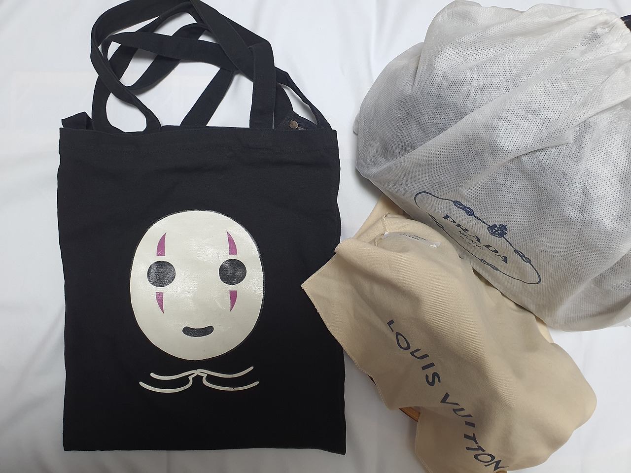 남편이 사 준 삼대천왕 백. 셋 다 소중하다. 그와중에 휘뚜루마뚜루 들기 가장 어려운 놈은 가오나시...