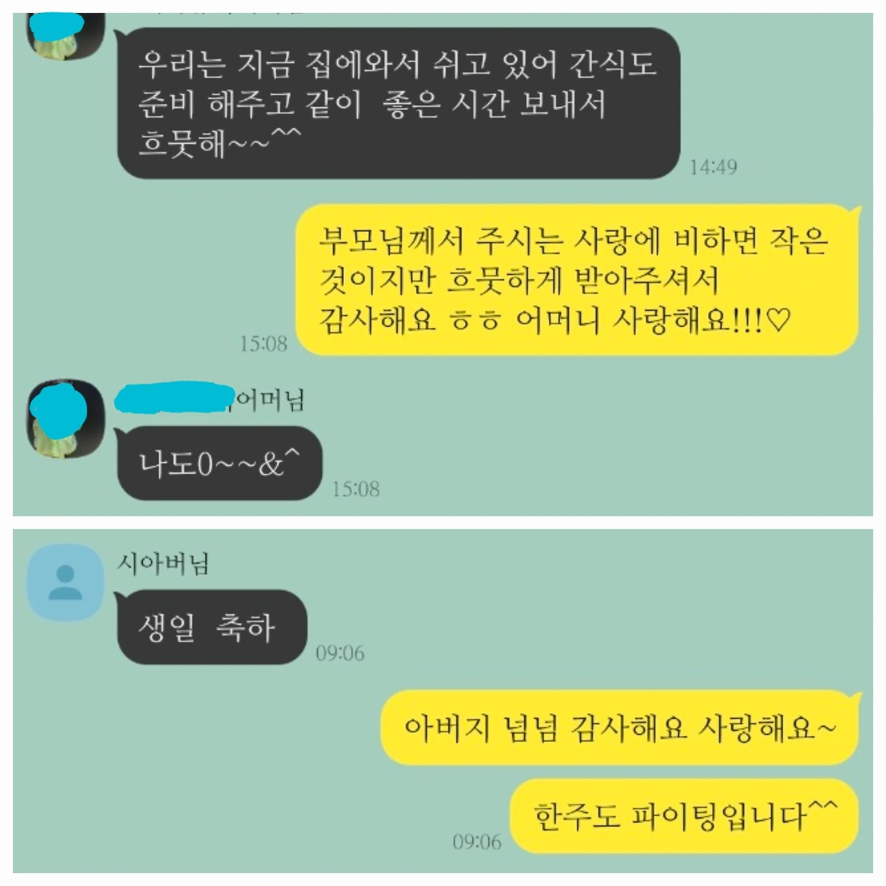 "저는 없어요. 그런 거." 고도의 집중력을 발휘하시던 시부모님께서 그제야 밝게 웃으셨다. 내가 마음이 넓어서가 아니라 좋은 시부모님을 뒀기에라야 가능한 상황이었다.