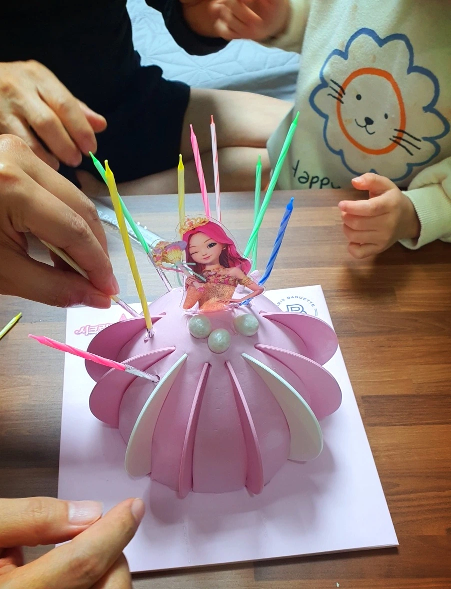 우여곡절 끝에 드디어 케이크를 확인했는데 이게 도대체 케이크야 예술품이야? 전혀 돈이 아깝지 않을 정도로 멋진 작품이 완성돼 있었다. 케이크를 선물 받은 조카의 눈에서 기쁨이 가득한 하트가 쏟아지고 아이를 지켜보는 우리의 눈에서도 꿀이 뚝뚝 떨어졌다. 선물은 본래 주는 사람이 받는 사람보다 기쁘다는 말을 체감했다. 갓 만든 케이크라 빵의 식감과 크림의 맛이 유명 베이커리에 뒤지지 않았다. 우리 모두 입술이 파랗게 물들도록 맛있게 먹었다.