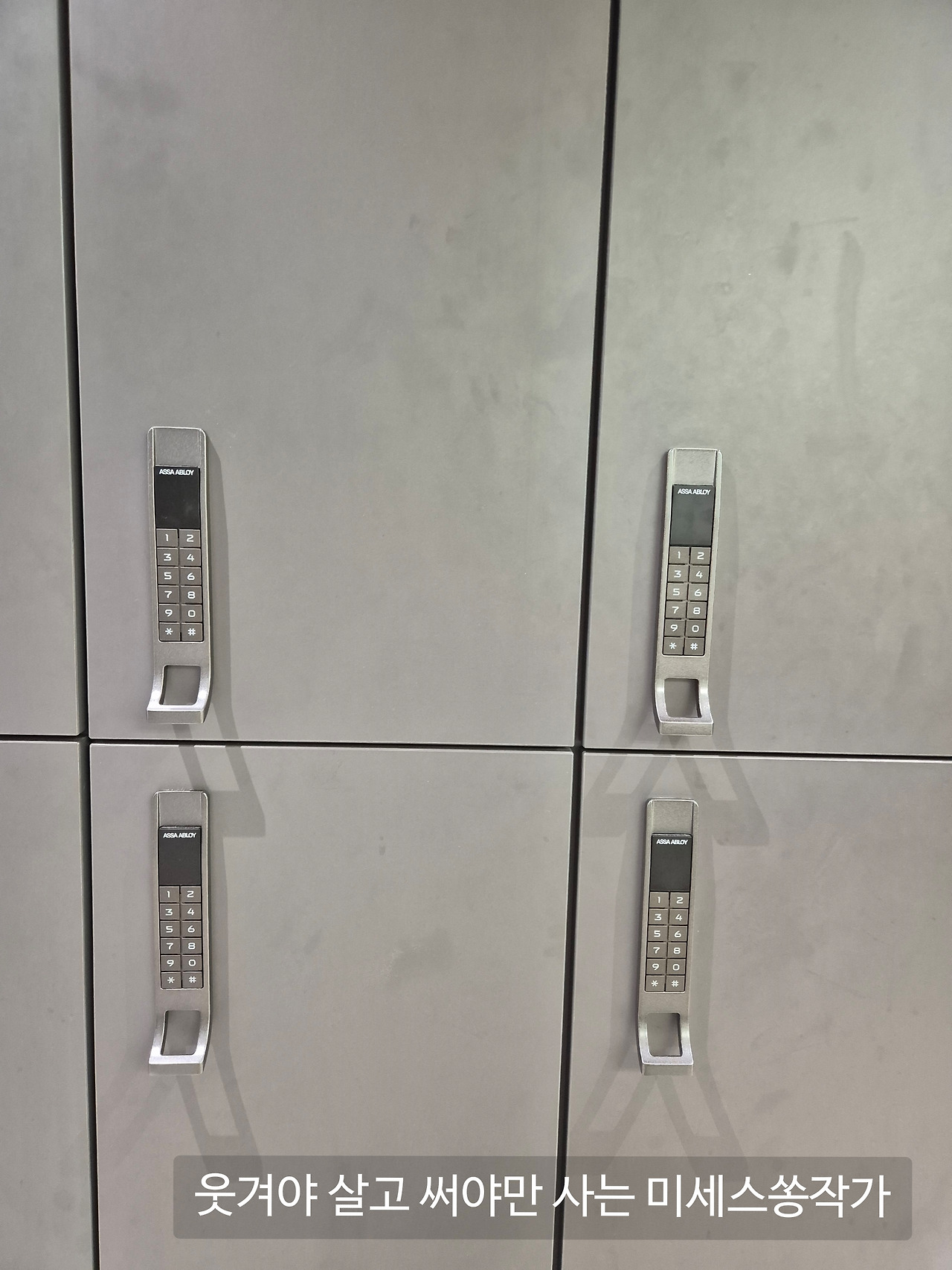 잠시 후 남자 직원이 블라블라 떠들자 아주머니가 통역사가 되어 샤워실로 오셨다. “사물함 번호가 뭐냐고 하네요?” 아. 뭐였더라. “죄송해요. 아까 그쪽 위칸 사물함인데 기억이 안 나요.”
