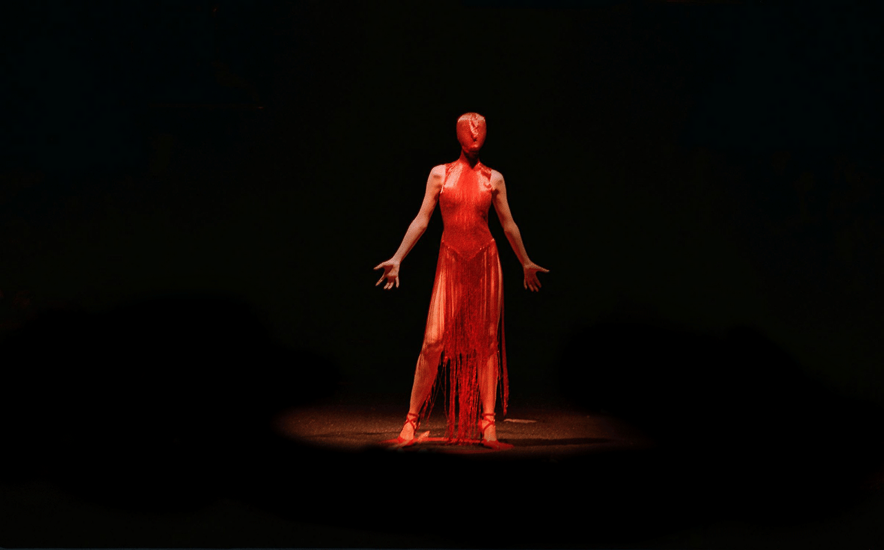 1998년 F/W 컬렉션의 마지막 피날레. 화염과 피를 떠올리게 하는 붉은 세틴 드레스를 입은 모델이 캣워크를 걸어 나온다. 얼굴까지 뒤덥은 드레스로 모델은 얼굴 형체만 어렴풋이 보인다. 영화 해리포터에서의 볼드모트가 떠오르는 얼굴이다. 캣워크 중간으로 와 멈춰 선 모델. 불이다. 1분 동안 화염의 고리 안, 모델은 알 수 없는 몸짓으로 움직인다. 이 피날레로 쇼는 마무리된다. 러시아의 마지막 왕조 로마노프가家의 처형이 모티브인 컬렉션답게, 피를 상징하는 붉은 의상과 종말을 상징하는 블랙 컬러를 중심으로 작품은 이뤄졌다.