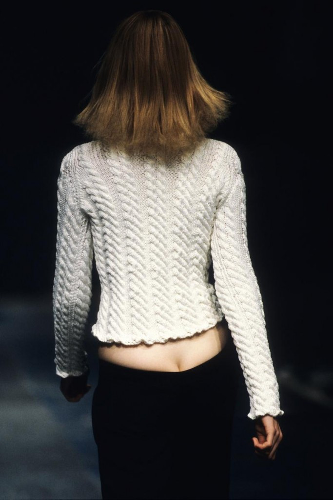 알렉산더 맥퀸은 이 컬렉션에서 젖가슴이 드러나는 커팅 니트웨어, 가슴보호대 모양의 석고 옷을 입은 모델이 워킹한다. 정말 그로테스크grotesque하다. 이런 퍼포먼스와 의상은 죽음이라는 키워드를 차용해 기존 패션에 대해 선언하는 그의 외침이었고, 새로운 패션의 탄생을 선언하는 그만의 컬렉션 언어였다. 그의 패션에는 기존 체제에 대한 반항과 새로운 것에 대한 창조의 의지가 반영되어 있다.