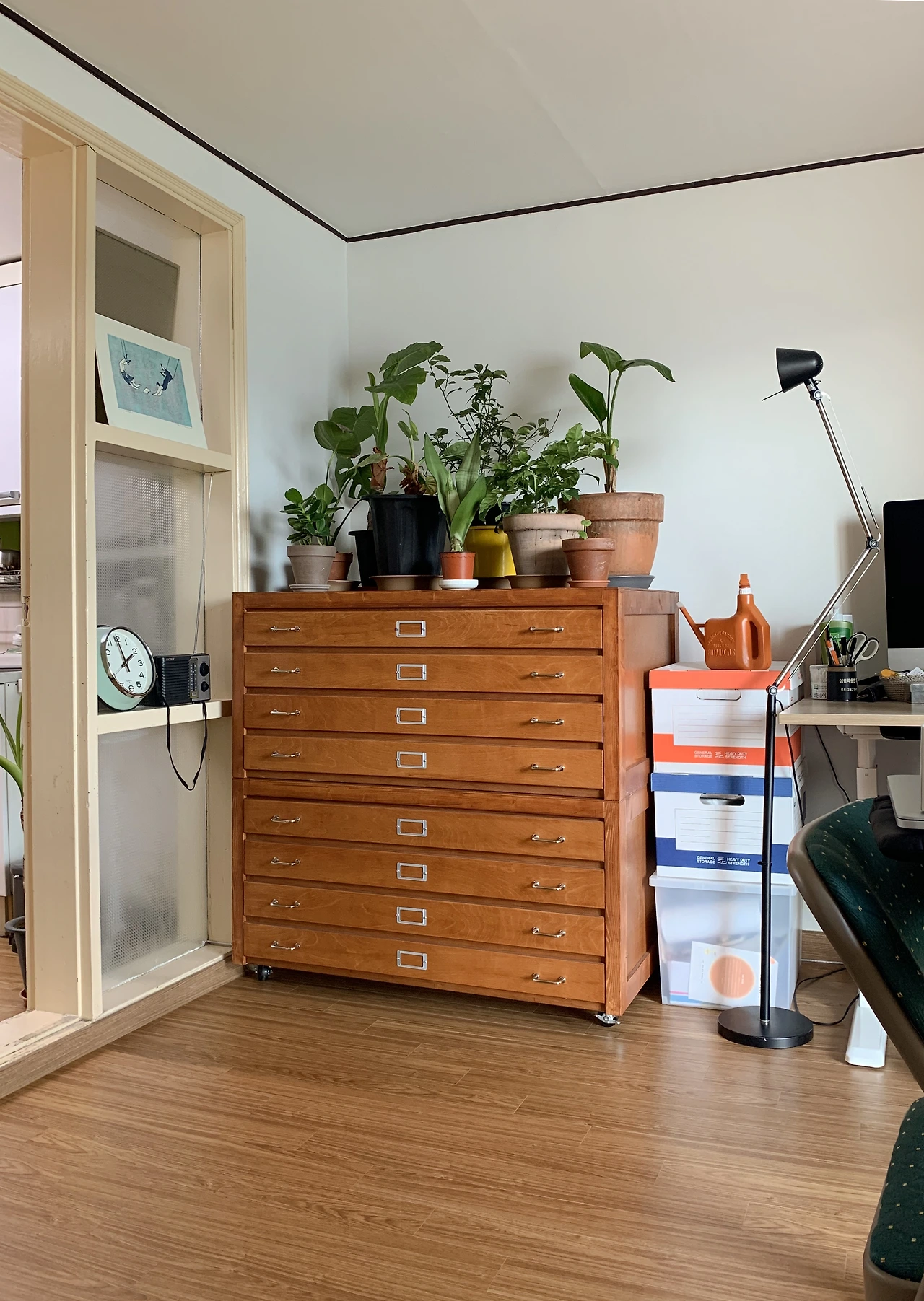 올해 2월. 강릉에 아파트를 계약했다. 엘리베이터가 없는 5층의 낡은 아파트이긴 해도 뒤로 소나무 숲, 앞으로 동네가 펼쳐진 풍경에 반해 망설임 없이 계약했다. 30년 가까이 된 아파트이다 보니 내부에 수리할 것들이 꽤 돼서 수중에 갖고 있던 돈을 털어버리다시피 했다. 그렇게 내 공간을 만들어놓고 보니 예전(작년) 에어비앤비에 대한 기억이 떠올랐다. 보잘것없어 보였던 공간을 내 나름으로 재탄생시켜 다른 사람에게도 느껴보게 하고 싶었다. 꼭 도심의 비싸고 현대적인 집이 아니여도 만족하며 살수있다는 것을 증명하고 싶은 치기어린 마음도 있었던듯 하다. 또 그 시기에 전시 관련 출장이 잦아지는 시기였어서 일단 한번 예약을 받아보자는 생각이 들어 예약달력을 오픈했다. 숙소 제목은 ‘소나무 숲이 보이는 일러스트레이터의 작업실 훔홈’