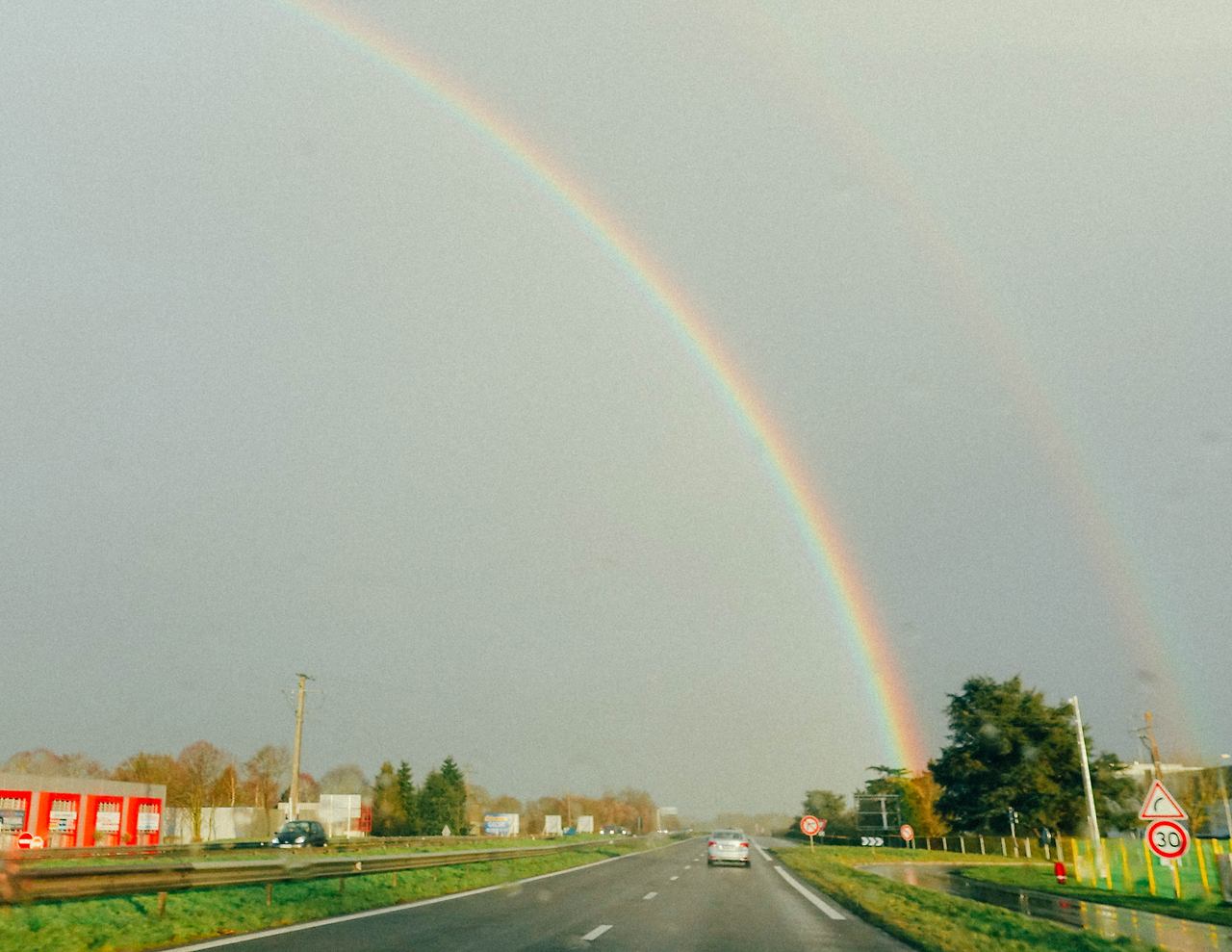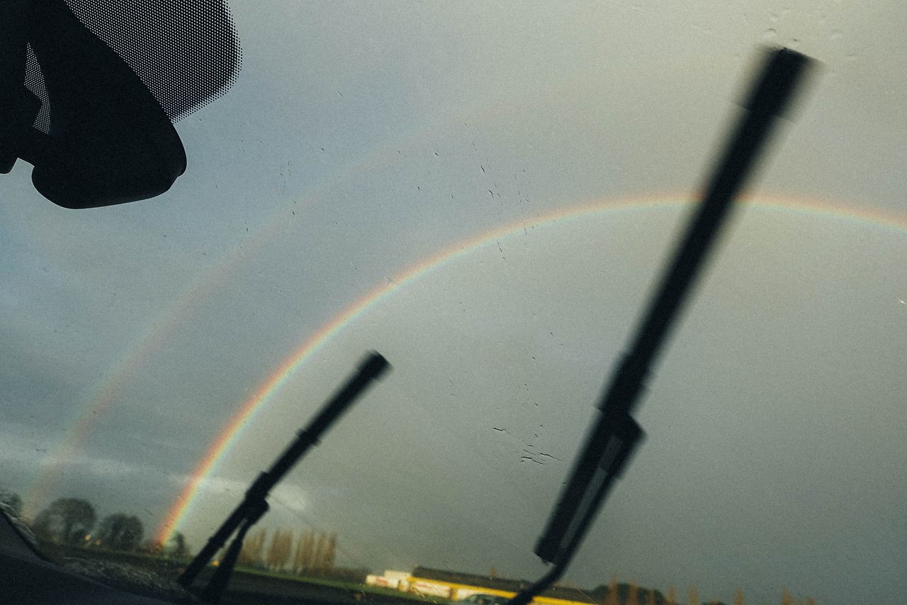전 날과 마찬가지로 날씨는 흐렸다가 맑았다가를 반복했다. 우린 렌터카 반납을 위해 차의 속도를 내어 달렸다. 한참 가고 있는데 길 앞에 커다란 무지개가 보였다. 나는 큰 목소리로 L 누나를 부르며 소리쳤다! "와! 누나 무지개에요!", "와 정말! 너무 이쁘다!"누나도 소리쳤다. 한껏 격양된 우리는 듣고 있던 노래의 볼륨을 더 키웠다. 자세히 보니 그 뒤에 흐린 무지개가 하나 더 있었다. 난 그 날 처음으로 쌍무지개를 봤다. 가랑비가 내리는 앞 차창으로는 와이퍼가 왔다 갔다 했고, 떨어지는 햇빛으로 인해 반짝이는 밭은 따뜻한 황금색이었다. 거기에 쌍무지개까지 더해져 내겐 눈 앞의 다채로운 풍경이 비현실적으로 느껴졌다. 지금도 그 순간의 기억을 떠올려 보면 눈 앞을 왔다 갔다 했던 와이퍼가 슬로모션처럼 느리게 움직인 것처럼 기억된다. 시간이란 순간의 상황과 감정에 따라 다른 속도로 흐르는 모양이다.