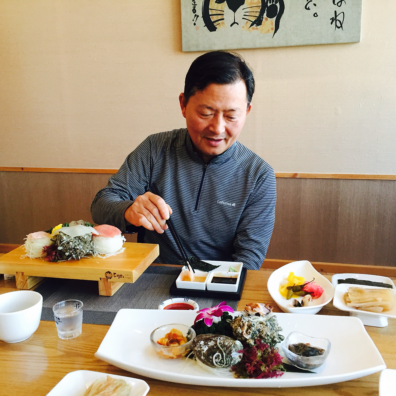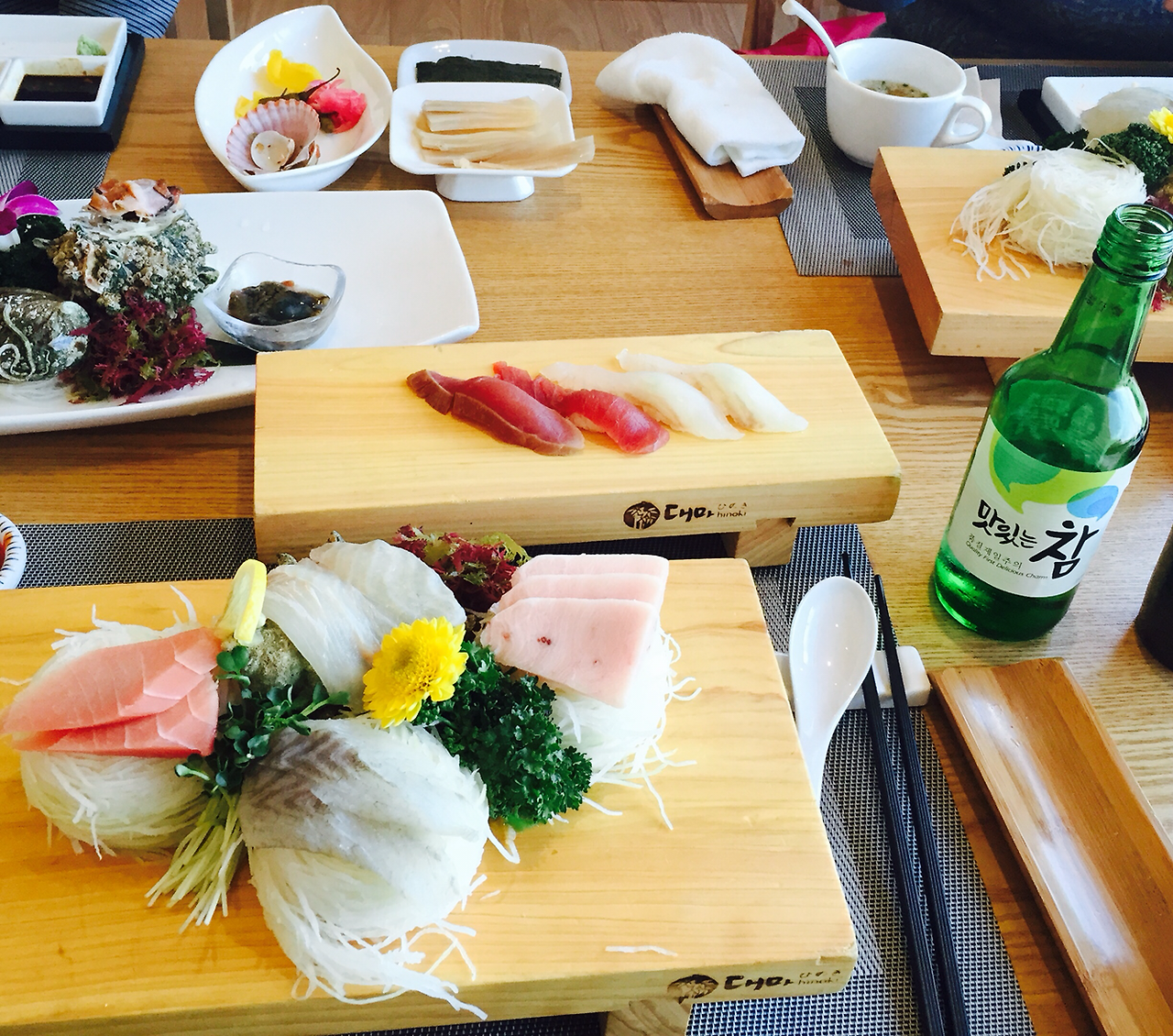 언덕에 자리한 <대마참치앤스시>. 형님이 예약해둔 방에 앉아 탁 트인 창밖을 내려다본다. 풍광이 오지다. 벚꽃에 둘러싸인 수성못을 우백호로 두고 좌청룡으로 밀려드는 회를 흐뭇하게 영접.