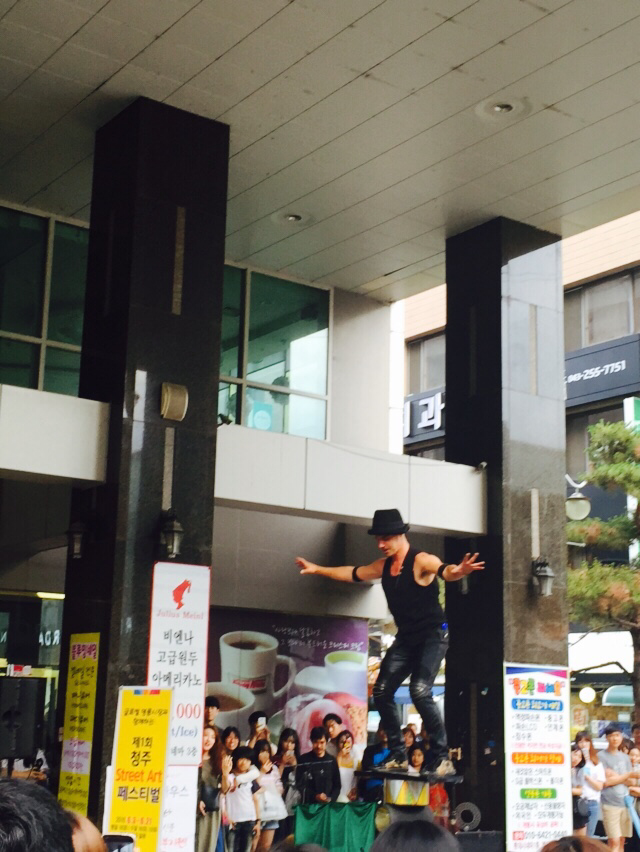 현충일 퇴근길. 김 원장 만나러 <로하스네일>로. 시내 성안길 지나는데 함성이 발목 잡는다. 검은 모자 청년이 끼부리는 중. 흔들흔들 휘청이더니 이내 똑바로 선다. 뜻밖의 진기명기. 기꺼이 물개 박수~ #이게_참_어렵다 #중심_잡기 #중용 #아내_발톱에_컨버스_운동화 #이것도_진기명기 #로하스네일