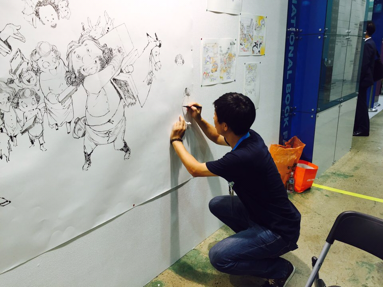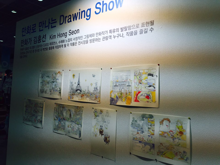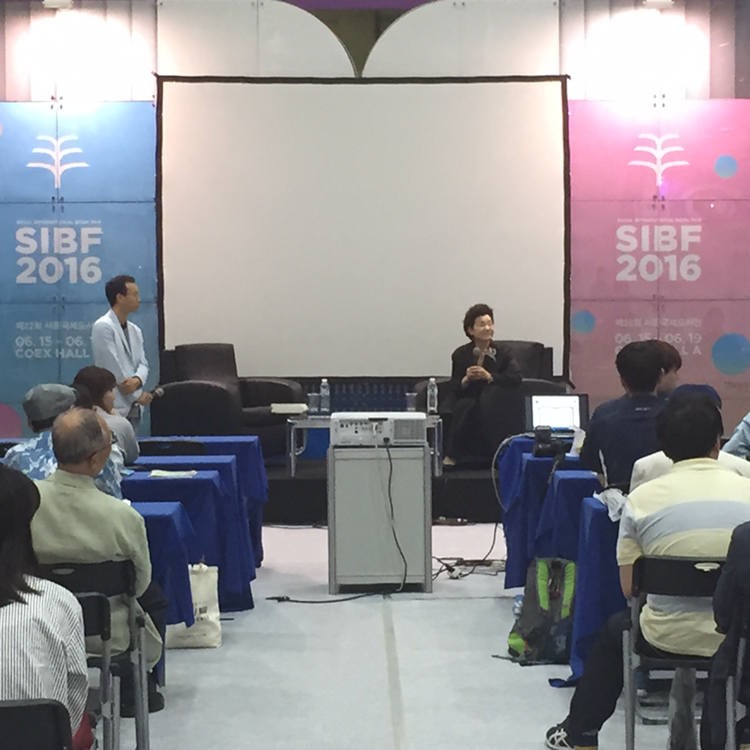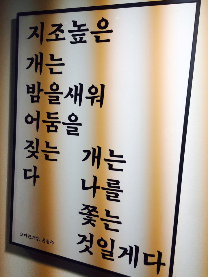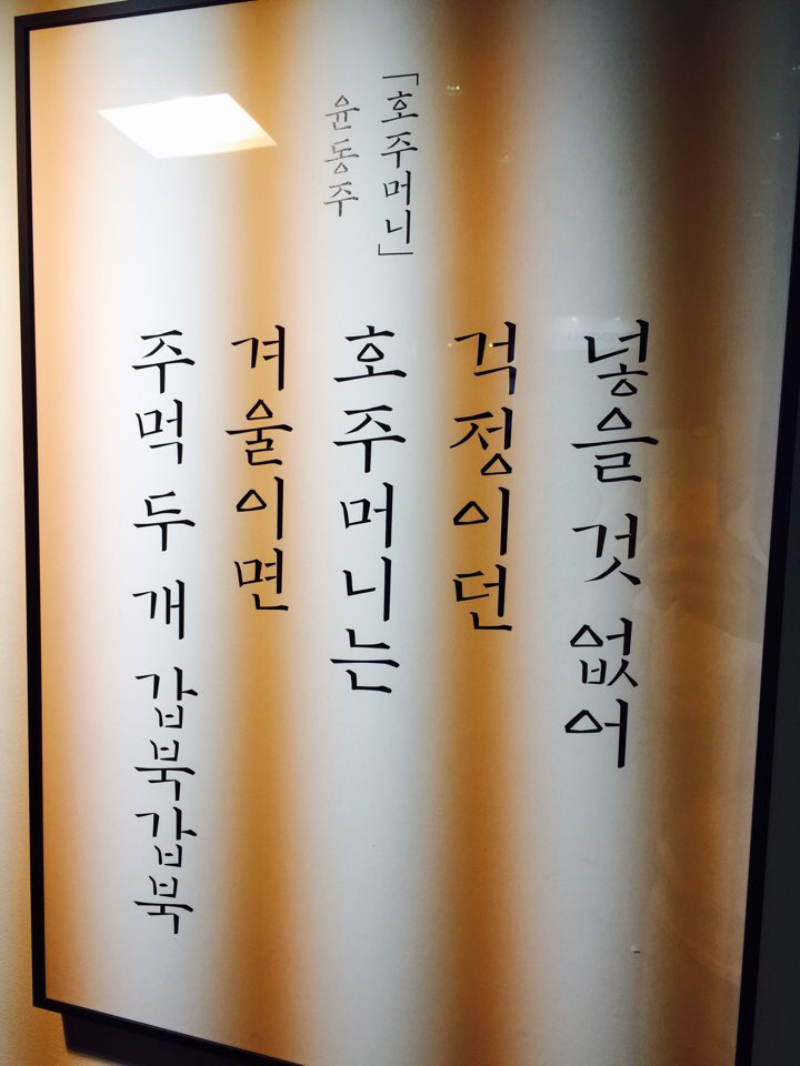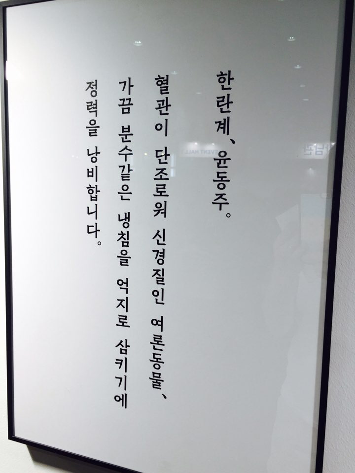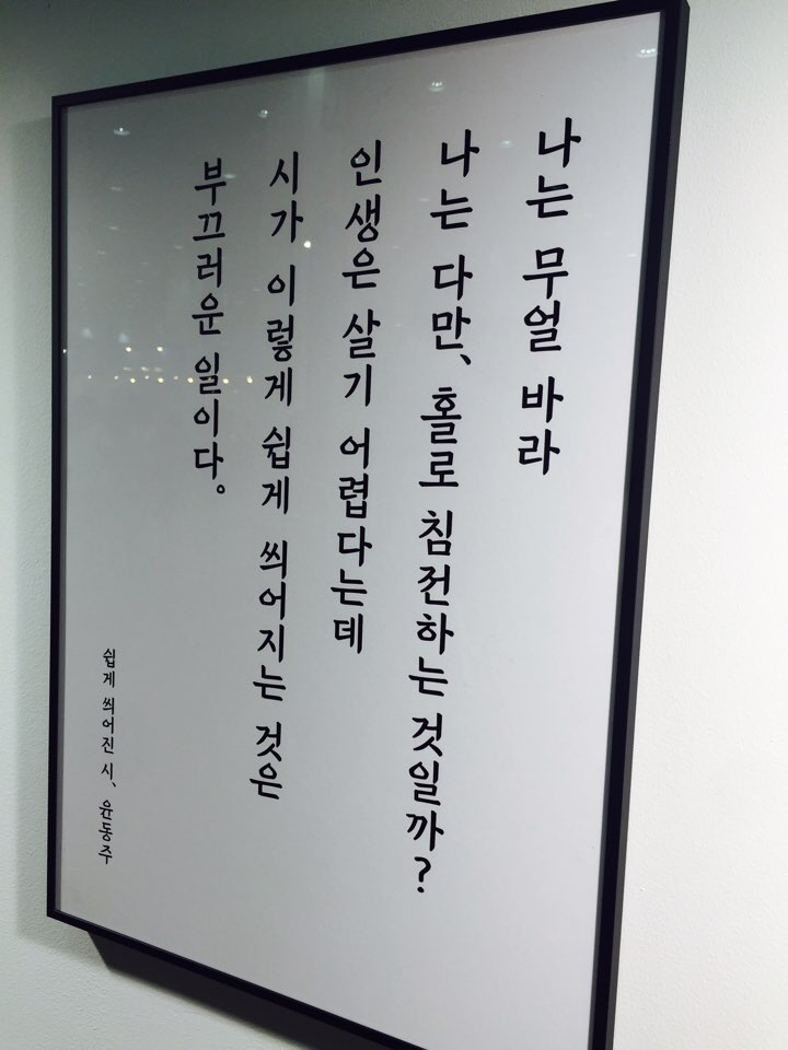 개성적 필체에 담긴 윤동주의 명시를 훑고, 경리단길에서 마주친 적 있는 이상현 캘리그라퍼의 <심통心通 글씨>전을 감상했다. 드로잉 퍼포먼스 선보이는 김홍선 만화가의 뒤태 더듬고 문학살롱 작가 대담도 멀리서 잠시 경청. 신달자 선생님이 수화로 감사 인사를 건넨다. 귀가 어두운 청중을 위해.