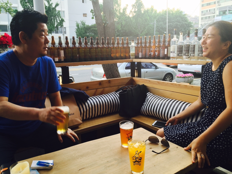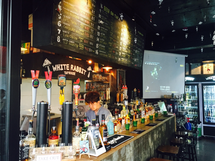 노천에서 맥주 한 잔. 흰 토끼! 아지트로 안성맞춤.