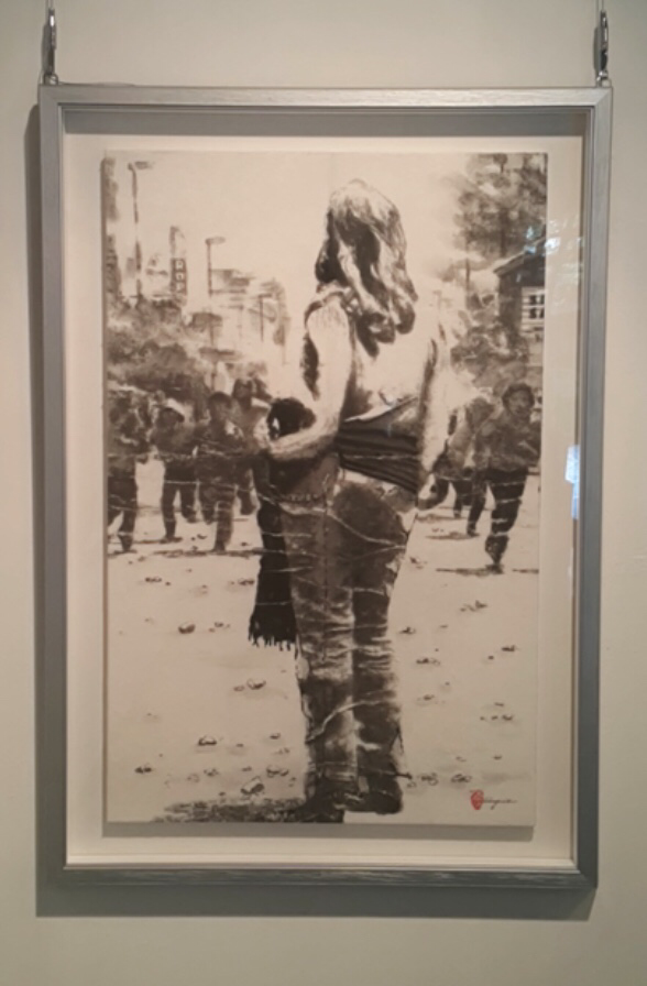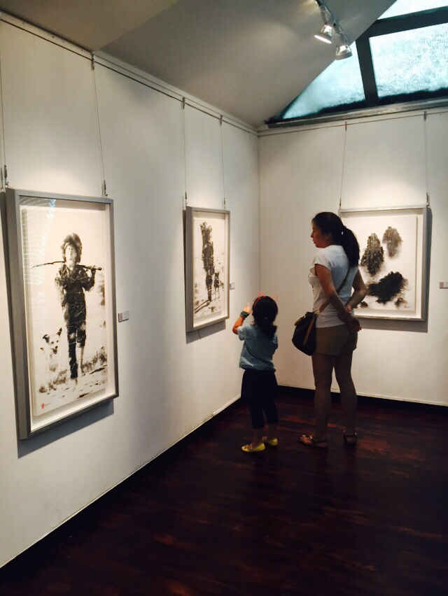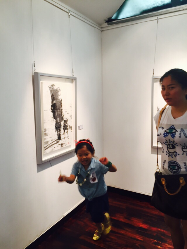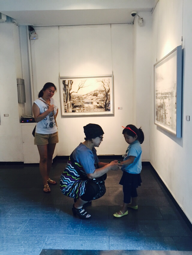 한지에 먹으로 어찌 이런 작품을.바탕에 사진을 두고 그렸을 거라는 한 작가님의 추측에 고개를 끄덕인다.그러거나 말거나아해는 마냥 즐겁다.김선화 선생님께서 챙겨주신 목걸이와 팔찌 몸에 두르고 미술관을 종횡무진.팔딱팔딱 엘랑비탈(élan vital).