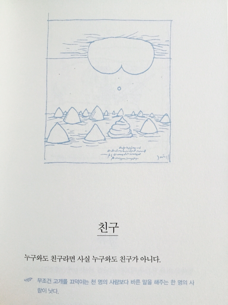 그러니까, 갈군다고 개기지 마라.그래서,내가 네 친구다.P.S.삽화를 그린 웨이얼차오는 하얼빈 출신의 심장내과 전문의다.당직 중 처방전에 그림을 그리곤 했다.기나긴 밤, 마음속 불안을 몰아내고자.70여 종의 책에 8,500여 장의 삽화를 그렸던 그는, 43세에 폐암으로 세상을 떠났다.