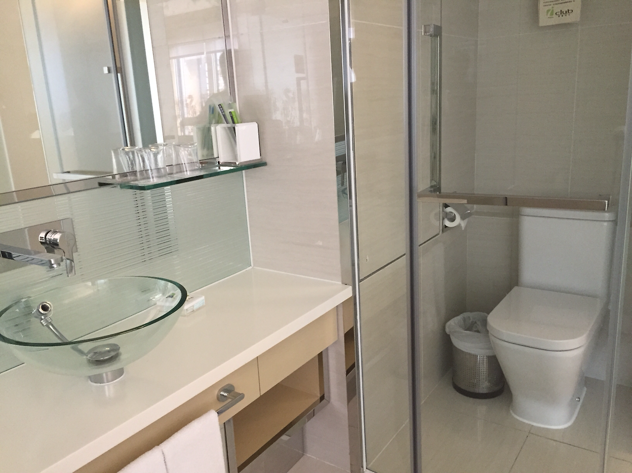 아이클럽의 아담한 스위트룸은 모던하고 무던한 분위기. 베드는 더블인데, 부대시설이 트윈이다. 티비가 두 대, 측간과 목간도 두 개다. 오호라! Watery diarrhea, bladder rupture 등 응급 유사시에 각자도생(各自圖生)할 수 있는 인테리어로구나.