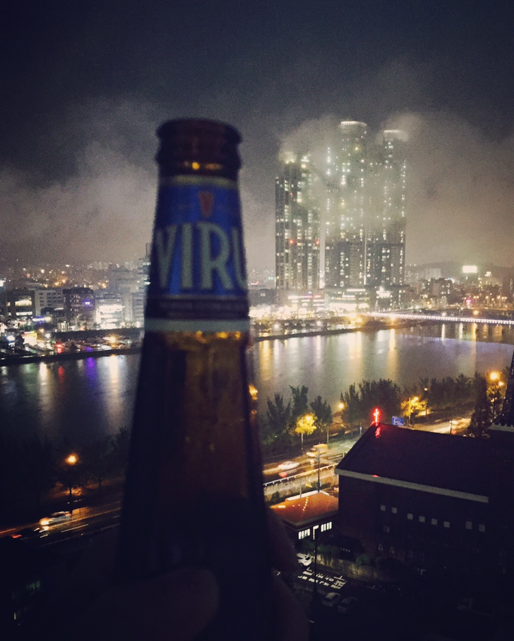 남들 쉴 때 일하는 비루한 일상! '청주의 토요일 밤'은'일요일 울산의 밤'과 이음동의어.청주에서 토요일 밤에 일한다는 건일요일 밤엔 울산에서 논다는 뜻이다.#VIRU #에스토니아맥주#안주는_비에_젖은_태화강