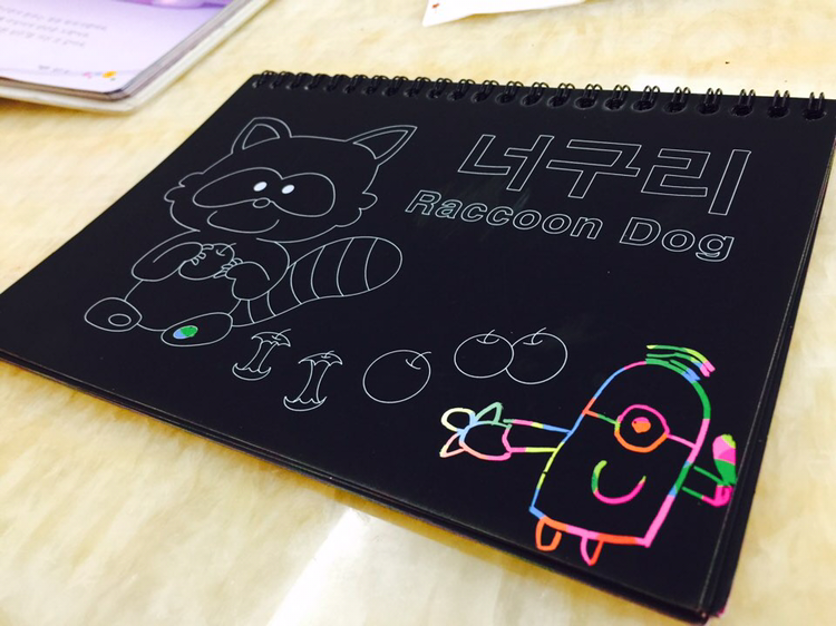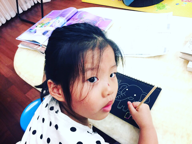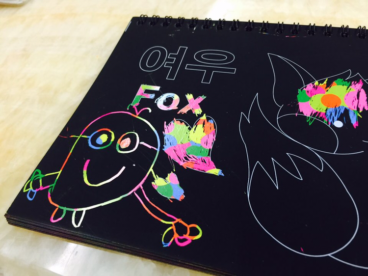 우리 집 꼬마 화가, 작품 활동에 여념이 없다.스크래치 기법미니언즈 연작,그냥 거침없이쓱쓱 그려낸다.뭐든 코에 갖다 대는몹쓸 버릇 때문에날카로운 플라스틱에 긁혀 예쁜 코에도 스크래치.