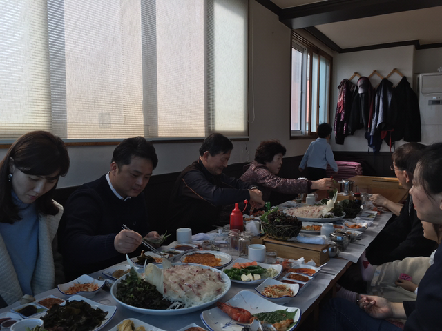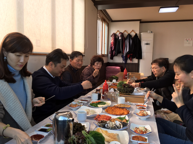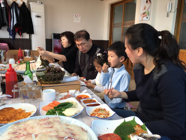 부모님과 형님네 가족이 울산에 오셨다. 새해맞이 이산가족 상봉 장소는 지경횟집. 참돔은 두툼하고 매운탕은 푸짐하다. 해산물 싱싱하고 호박전 촉촉하다. 이번에도 기대를 저버리지 않는다. 느낌이 좋다. 정유년 또한 기대를 저버리지 않을 듯하다.#지경횟집 #참돔 #매운탕#손님_오시면_무조건_여기
