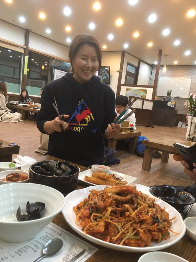 오창의 <명품 아구촌 쭈꾸미 마을>. 한 작가님 모시고 박 여사님 일터에 드디어 들렀다. 입맛 돋우는 매콤한 안주에 탄산수 섞은 소주를 홀짝인다. 박 여사님 표정이 한결 밝다. 일하며 용돈도 벌고, 좋은 친구들과 돈독하게 잘 지내고 있다.