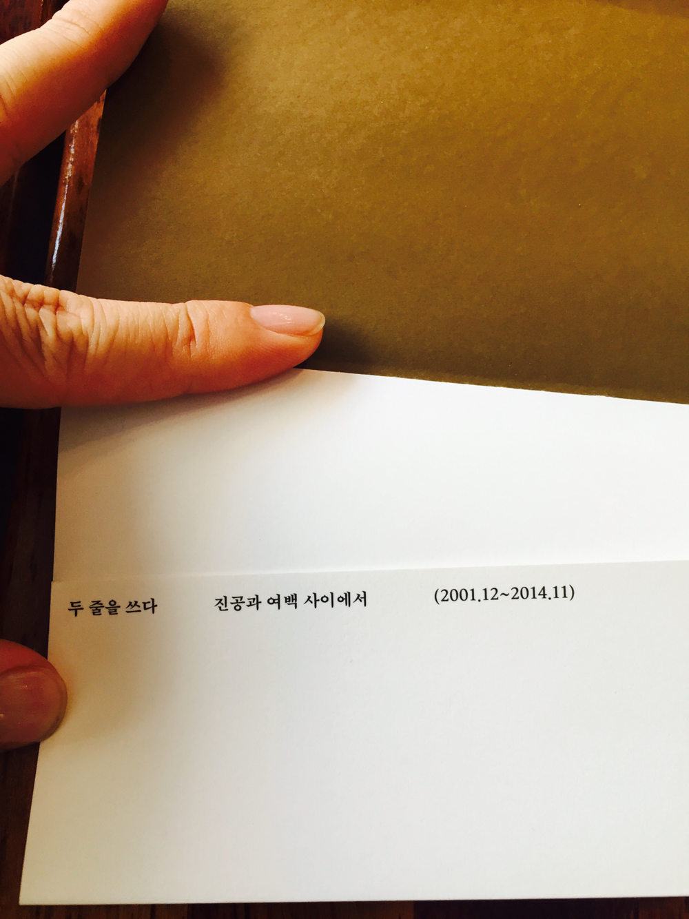 '두 줄을 쓰다. 진공과 여백 사이에서.'