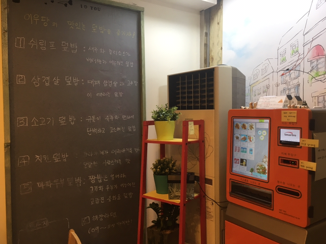 자판기에 현찰 넣고 메뉴부터 고른다. 무심코 고른 쉬림프 덮밥, 나쁘지 않다.