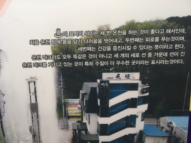 처음 알았다. 가운데 세로 선이 특히 긴 온천 마크의 의미. 특히 수질이 더 우수하단 뜻이라고. 특별한 수질을 자랑하는 이 온천에 자주 들를 듯하다.