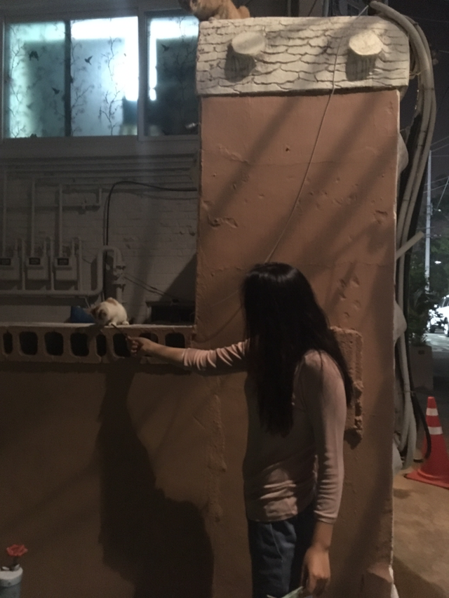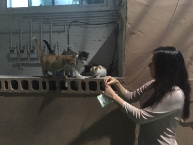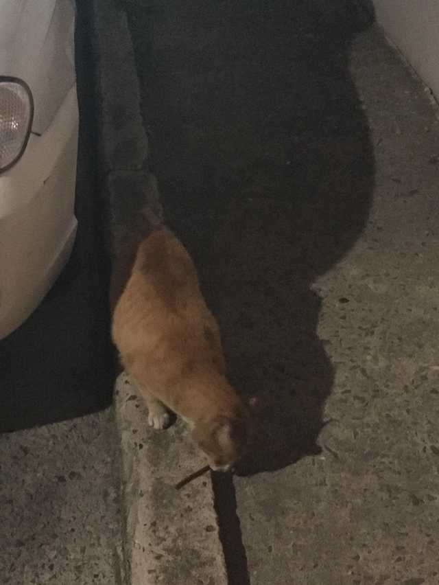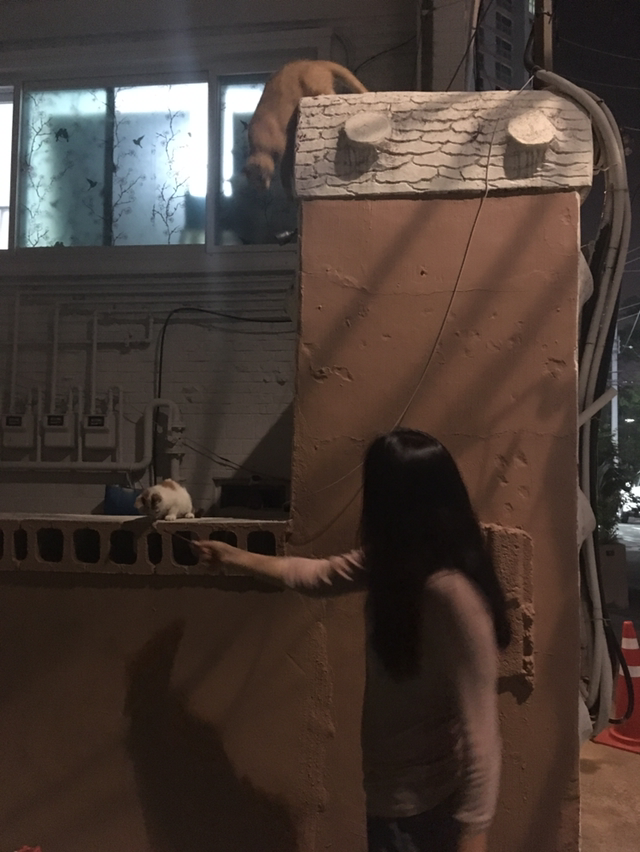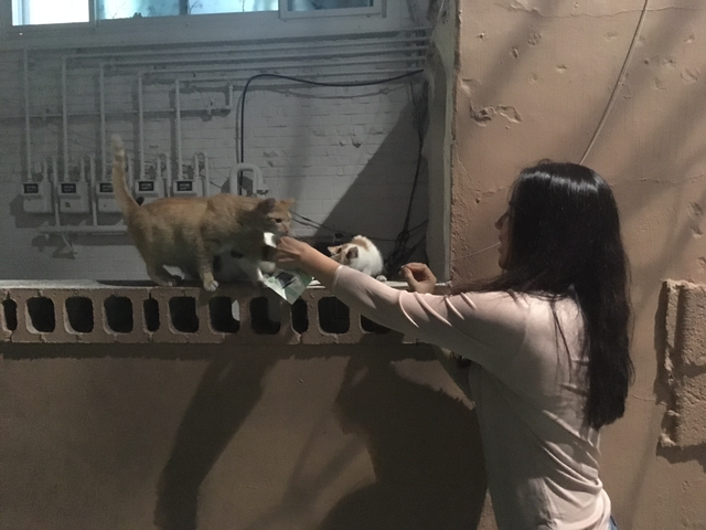 아내와 달밤 드라이브. 고양이 아지트에서 잠시 멈춘다. 차에서 일용할 양식 꺼내 보시한다.