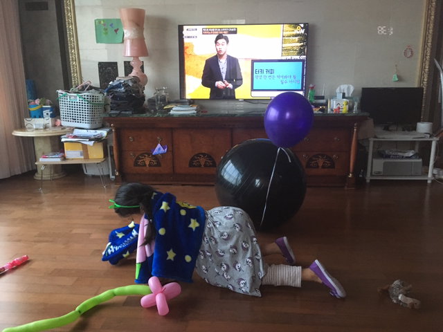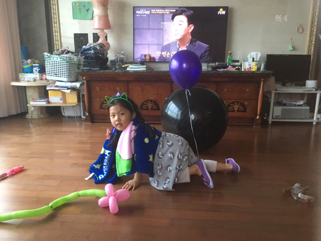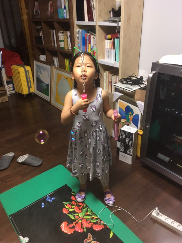 유니콘처럼 거실 누비다내 서재에 난입해 비눗방울쇼.뭉게뭉게 동심이 날아다닌다.