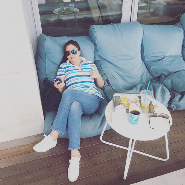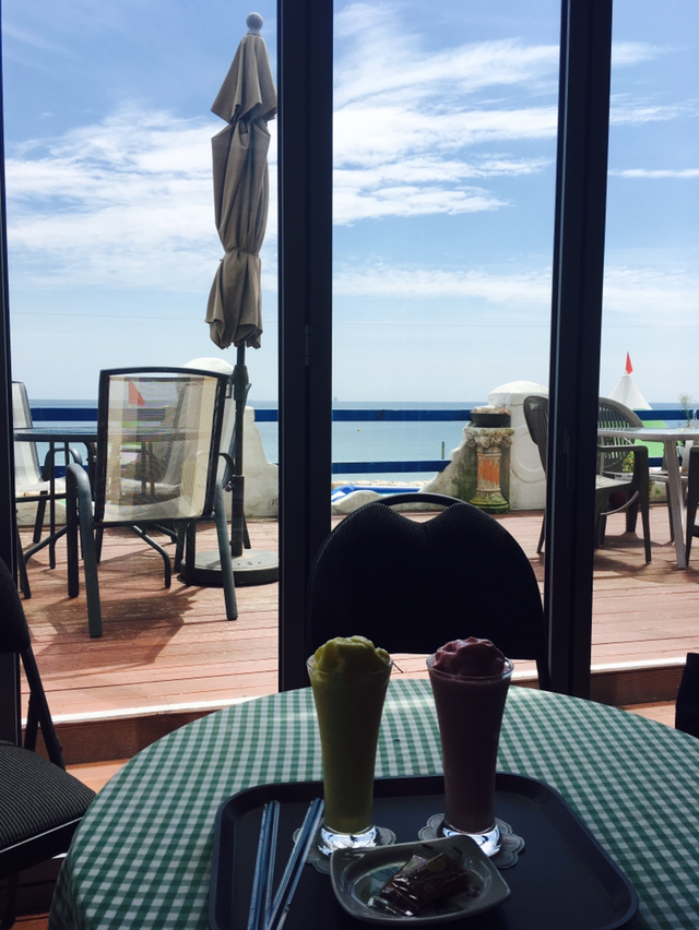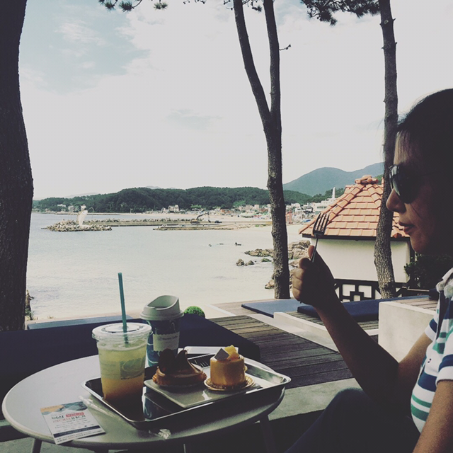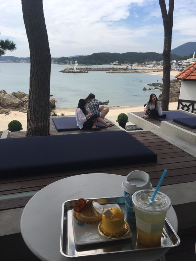 '뷰깡패'라길래 가보았다. 기장의 웨이브온 커피. 맞짱 떠보니 가히 헤비급 명당이다. 제대로 얻어맞고 빈백 위로 쓰러진다. 썸머피치에이드 부어주고, 레몬 타르트와 랑티에 쑤셔 넣으니 겨우 정신이 돌아온다.