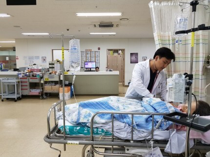 8년째 효성병원 응급실을 지키고 있는 하민석(38.응급실 과장) 의사는 “명절의 응급실은 여름 휴가 때의 해운대와 같은 곳”이라며 “평일의 3배, 주말의 2배 정도, 평상시 보다 3배 정도 많은 환자가 내원한다. 환자를 보고 돌아서면 또 환자가 있다고 보면 된다”고 분위기를 소개했다.