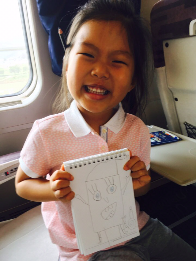아이에게 기차는 화실이다. 울산에서 서울 가는 동안 쉴 새 없이 끼적끼적.