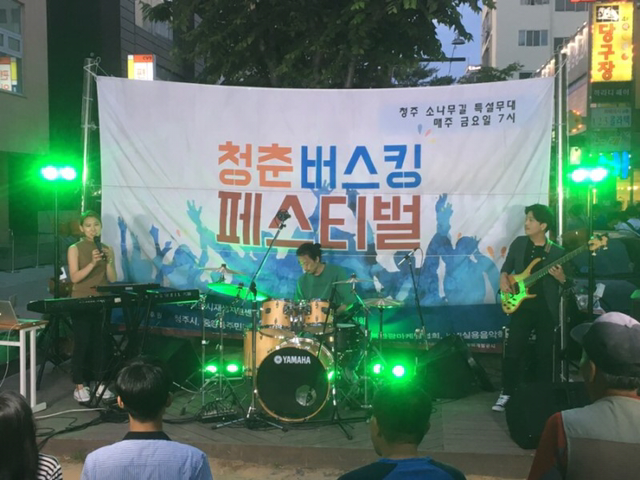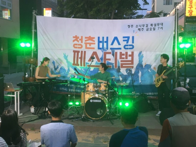 병원 빠져나와 도장 가는 길. 시내 소나무길에서 공연이 한창이다.