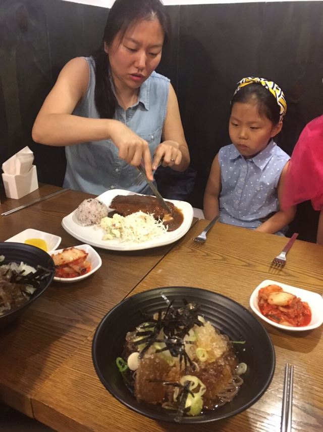 치즈돈까스에 냉모밀 먹고도 뭔가 허전. 하여 치킨까스까지 해치운다. 테이블 맞은편에서 펼쳐지는 엽기 호러 픽쳐쇼가 풍미를 더한다. 돈까스 먹고 돈 표정. 식중독이 이렇게 무섭다.