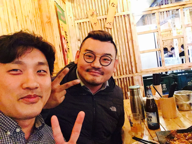 그 언제가 어제가 됐다. 11년 하고도 8개월이 흐른 뒤에야 비로소 건배. 형님은 여전히 초롱초롱 큐트하시네. 셀카고자협회 빠숑 고자 선발대회 왕관이 이렇게 잘 어울릴 수가! 술 마시면 개 되는 개인기 튀어나오기 전에 살포시 귀가.