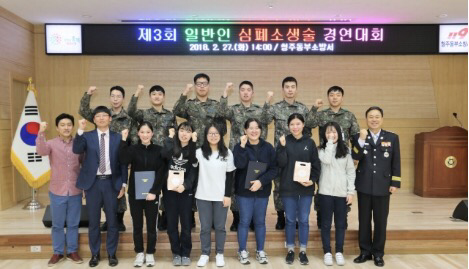 세 명이 한 팀이 되어 제한시간 8분 안에 CPR 솜씨를 뽐낸다. 이른바, 일반인 심폐소생술 경연대회. 올해로 세 돌을 맞은 행사에선 일곱 팀이 경합을 벌였다. 고등학생과 대학생, 의경과 군인 등이 그간 연습한 실력을 유감없이 발휘했다. 각자의 일상이 녹아든 상황극이 몰입도를 높인다.