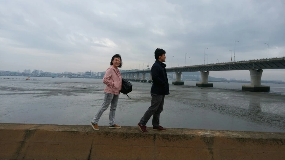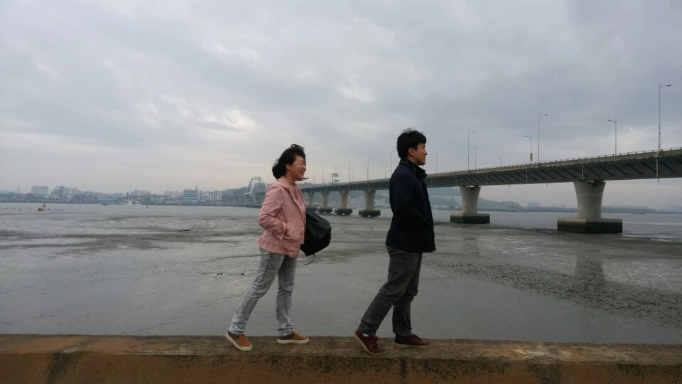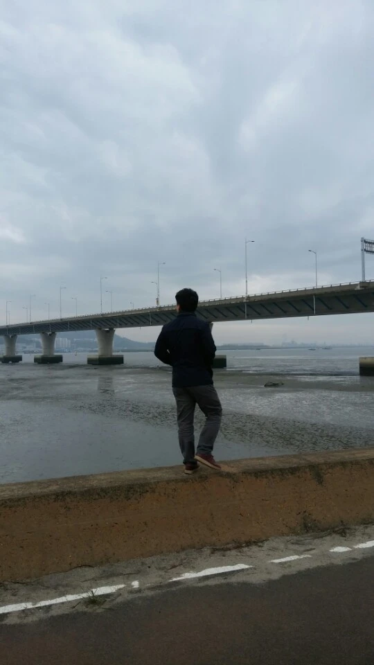 충남 서천과 전북 군산을 잇는 동백대교. 완공 앞둔 다리를 바라보며 둑길을 사뿐사뿐 거닌다. 상념에 젖어 나아가는 내 뒤를 도제가 뚜벅뚜벅 따라 걷는다. 내 발걸음 보며 끝까지 따르겠다는 의지의 표명이다.