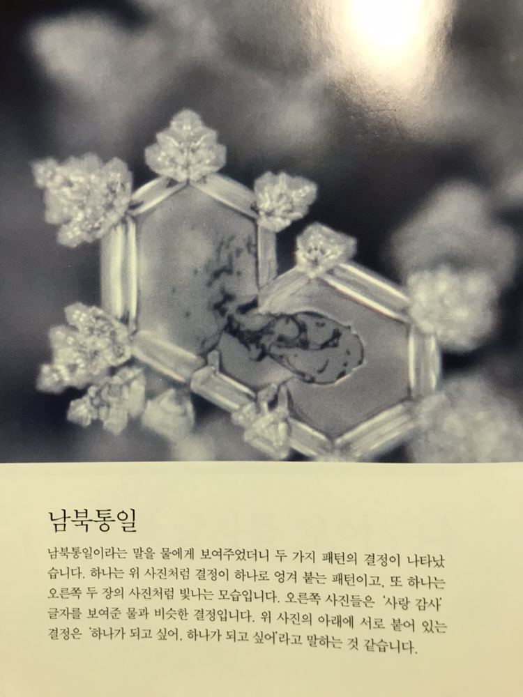 <물은 답을 알고 있다>를 쓴에모토 마사루가 ‘남북통일’을 테마로 실험을 한 적이 있다.