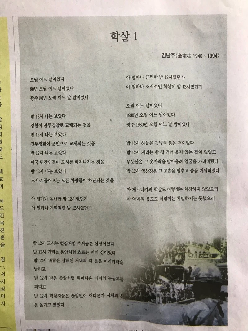 내가 태어난 해에 죽어간 이들을 떠올린다.처참한 학살. 치밀한 음모. 오월 어느 날.