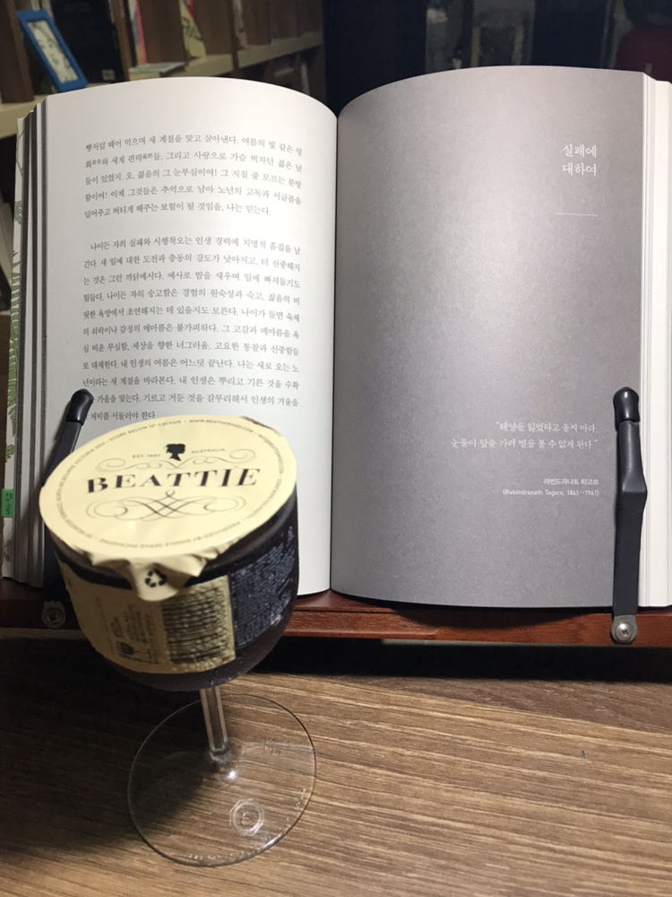 서재에서 홀짝인다. 한 잔 와인. 일광의 독립서점, 커뮤널테이블(Communal Table)의 미녀 사장님에게서 인수한 아이템이다. 안주는 장석주. <가만히 혼자 웃고 싶은 오후>는 잔잔한 산문집이다. 일상의 단상에 명사들의 아포리즘을 섞었다. 타고르의 통찰에 오래 머문다. “태양을 잃었다고 울지 마라. 눈물이 앞을 가려 별을 볼 수 없게 된다.”