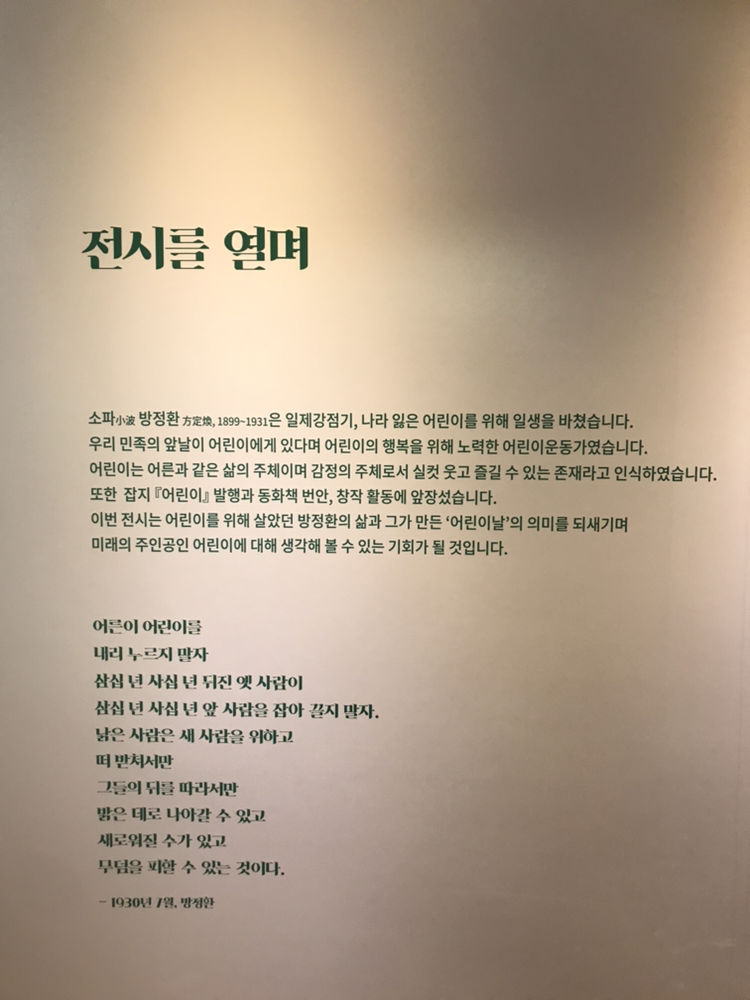 환단학회 마치고 박물관 둘러본다. 로비에서 소파 방정환 선생의 생애를 더듬는다. 과로로 서른 셋에 요절할 때까지 오직 어린이를 위해 헌신하신 분의 말과 글을 곱씹는다.