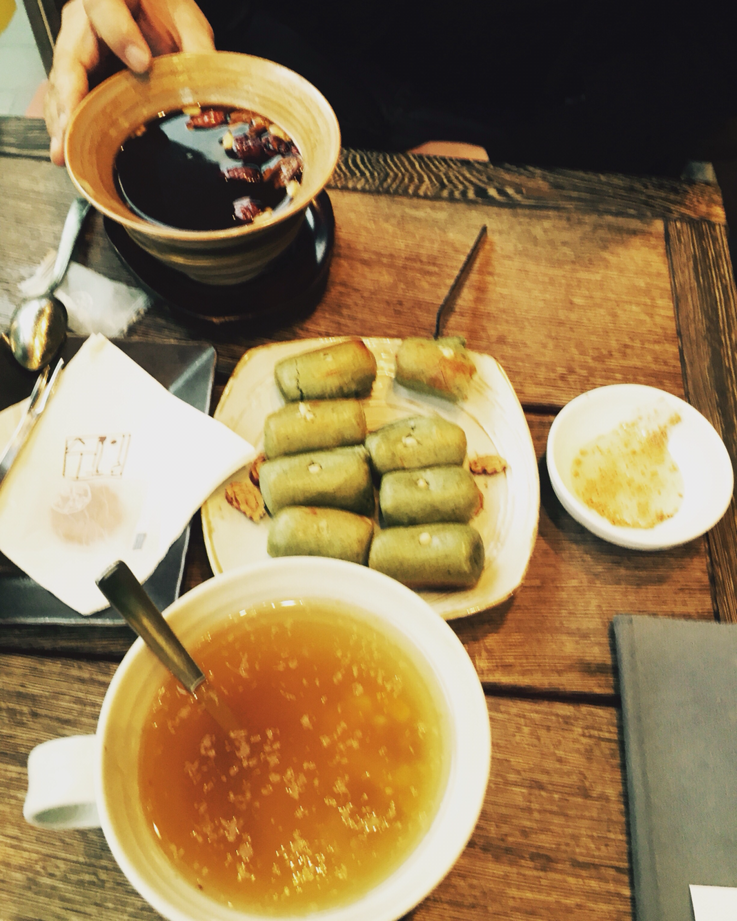 쑥가래떡구이와 유자차, 쌍화차