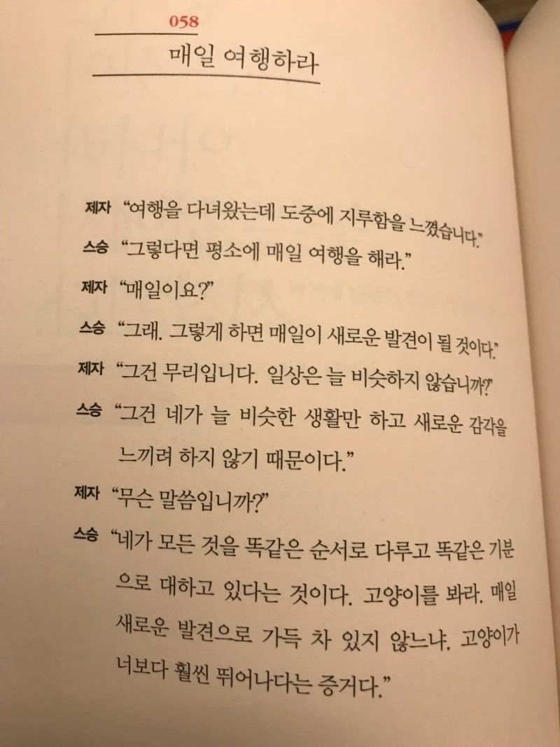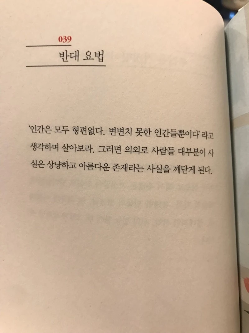 만단설화의 요지는 ‘매일 새로운 발견으로 가득 찬 삶’입니다. 주어진 모든 것에 기뻐하며 현재를 현재답게 사는 법을 속삭이네요. 평소에 품었던 생각을 대변한 문장과도 대면합니다. “‘인간은 모두 형편 없다. 변변치 못한 인간들뿐이다’라고 생각하며 살아보라. 그러면 의외로 사람들 대부분이 사실은 상냥하고 아름다운 존재라는 사실을 깨닫게 된다.”