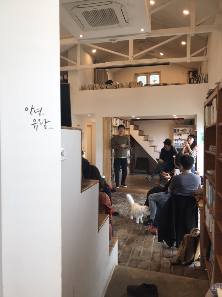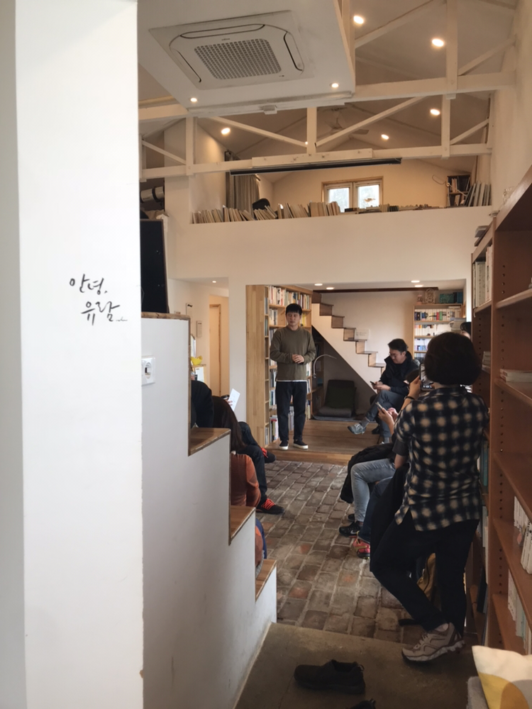 인테리어 디자이너이자 어마어마한 북 콜렉터이신 유람 북카페 사장님 이야기도 경청하였습니다. 해우소 문에서 포착한 책들은 이번 유랑의 큰 수확이었습니다.