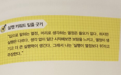 뼈 때리는 충고의 핵심은 ‘실행’입니다. 실행이 답이라죠. 열정도 실행을 위한 겁니다. 뜻이 있는 곳에 길이 있고, 행行이 있는 곳에 복이 있습니다. 실행해야 행복해요. JUST DO IT!
