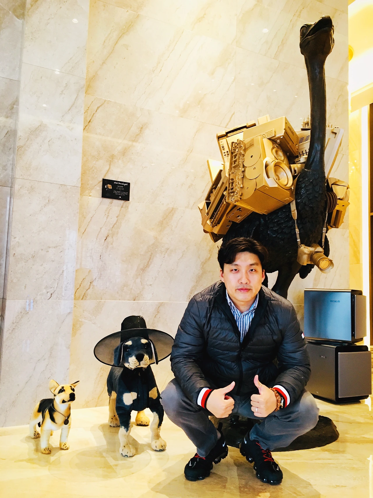 반려동물을 데리고 올 수 있는 호텔의 로비.